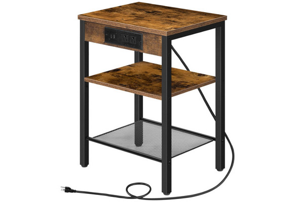 【限时7.1折】HOOBRO 复古棕色三层小边桌 (带充电USB接口):特价39.99(原价55.99),紧凑设计,轻松搬运,方便充电,外观时尚!