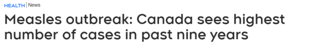 加拿大9年来最大规模麻疹疫情:1例死亡138例确诊