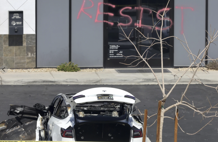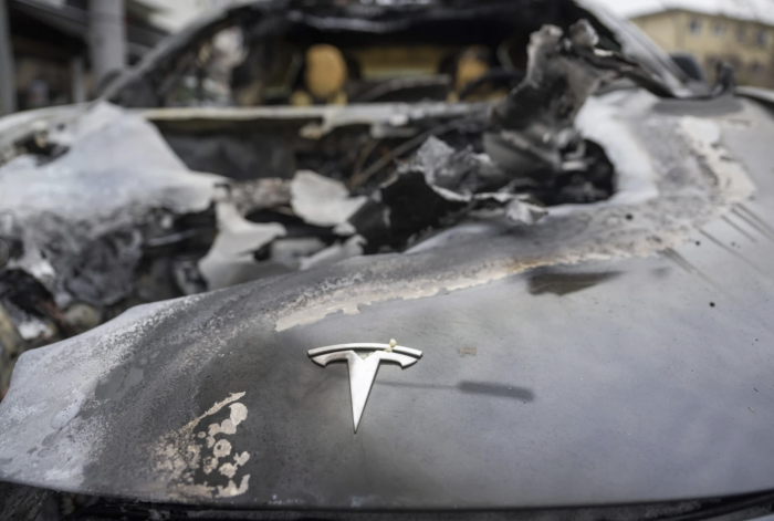 在美国,至少有 10个州出现了针对特斯拉的恶意破坏活动。特斯拉经销店、充电站和设施遭到袭击,社交媒体上发布的越来越多的视频显示,有很多人涂抹、损坏、甚至点燃特斯拉汽车。有一个网站还鼓励人们以特斯拉汽车为目标,并发布一张地图,上面有全面的特斯拉车主和特斯拉设施的信息。