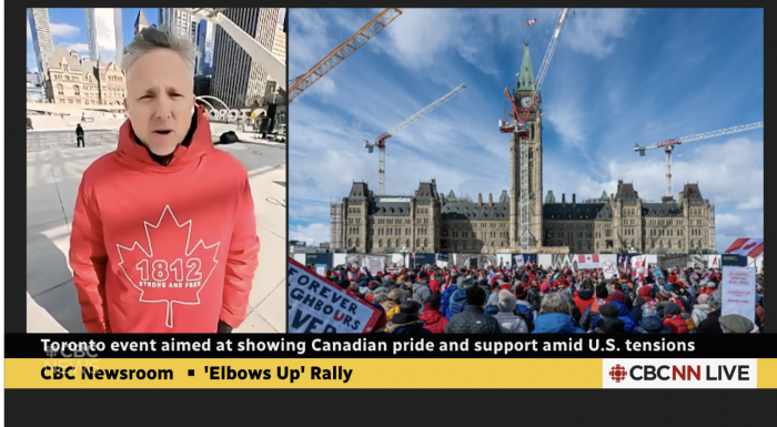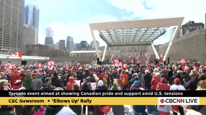 在特朗普威胁加拿大主权并对加拿大商品征收关税之际,周六的集会被称为 “团结、韧性和力量的和平展示”,是草根运动 “Elbows up!”的一部分。