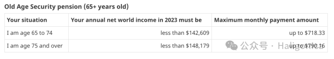 也就是说,一个人想要拿满额老人金,需要在加拿大居住40年,而且离境的时间一次不能超过6个月,否则就要扣除相应的月份,而且退休前和退休以后的年收入还不能超过8万六。为什么说退休以后的收入?从某种程度上来说,养老金也是应税收入。包括你从个人养老储蓄账户里取出来的钱,都是应税收入,这个我们第三篇文章会讲。而且这个规则跟你是不是永居或者公民没关系,都一视同仁的。